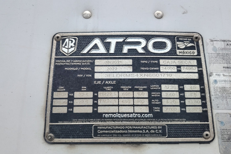 Tipo remolque: Seco